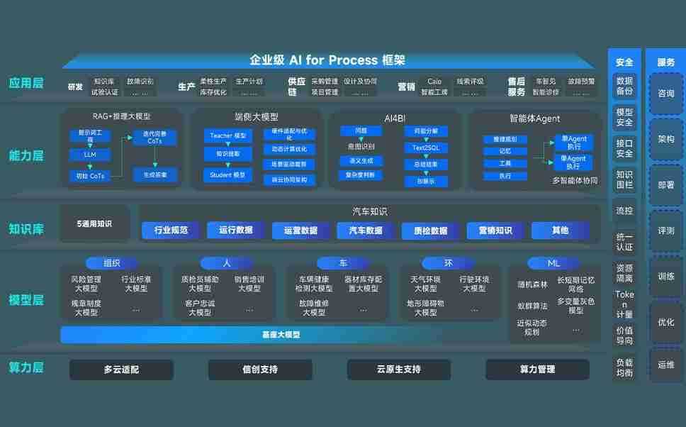 易博问学智车解决方案是一套基于AI技术的汽车行业智能化系统,,覆盖从底层算力到顶层AI应用的全栈方案。。。。方案由算力层、、、、模型层和应用层组成:算力层,,,,方案支持多种一体机配置,,,具备云端灵活部署、、、、多云适配以及动态优化计算资源的能力;模型层,,,易博问学平台版提供了企业级AI应用一站式构建与管理平台,,,,支持基于后训练强化技术的汽车企业专属模型的训练、、、评测和运营;应用层,,,易博问学DeepSeek版提供包括超级员工、、智能招采、、、智能营销、、、智能客服、、、AI for BI等一系列解决方案,,,,可助力汽车行业实现数字化转型,,让管理更智能、、、响应更敏捷。。。。